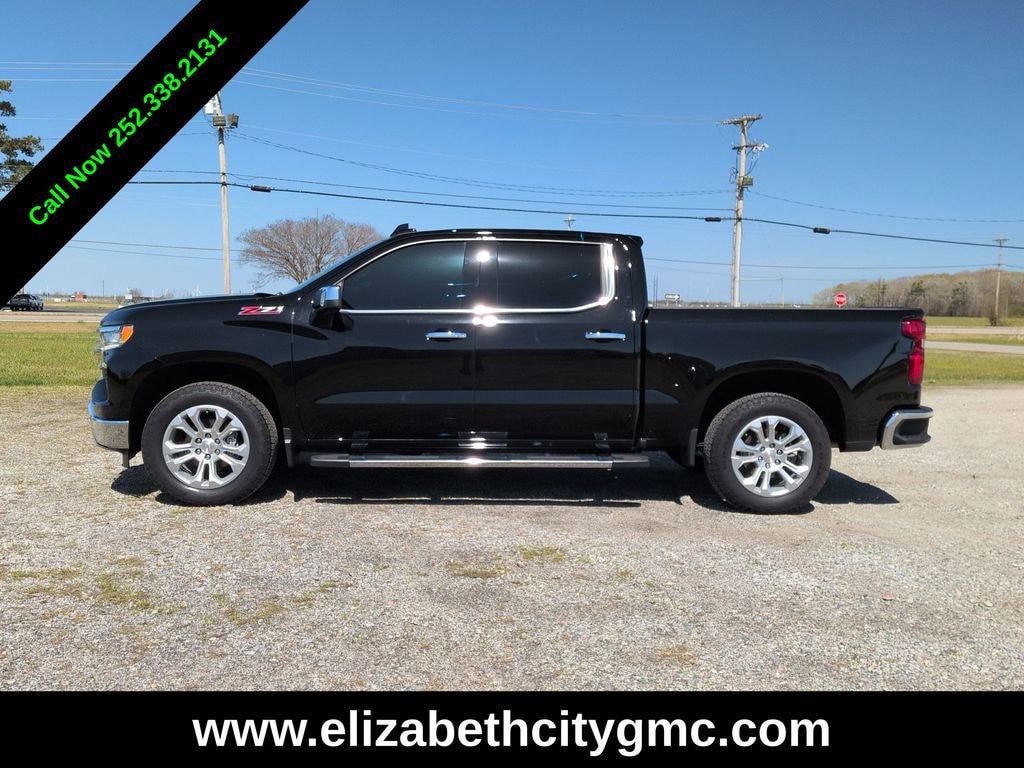 2024 Chevrolet Silverado 1500 LTZ EcoTec3 5.3L V8 4WD Black Silverado 1500 LTZ, 4D Crew Cab, EcoTec3 5.3L V8, 10-Speed Automatic, 4WD, Black, Black Leather, 10-Way Power Driver Seat w/Lumbar, 10-Way Power Passenger Seat Adjuster w/Lumbar, 12.3 Multicolor Reconfigurable Digital Display, 120-Volt Interior Power Outlet, 15 Diagonal Multicolor Head-Up Display, 2 USB Data Ports, 2nd Row Heated Outboard Seats, Adaptive Cruise Control, Auto-Dimming Inside Rear-View Mirror, Auto-Locking Rear Differential, Bed View Camera, Bluetooth® For Phone, Chrome Mirror Caps, Color-Keyed Carpeting Floor Covering, Deep-Tinted Glass, Driver Memory, Dual Exhaust w/Polished Outlets, Dual Rear USB Ports (Charge Only), Electric Rear-Window Defogger, Electrical Steering Column Lock, Electronic Cruise Control, Floor Mounted Center Console, Front Frame-Mounted Black Recovery Hooks, Front LED Fog Lamps, Front Rain-Sensing Wipers, Front Rubberized Vinyl Floor Mats, Heated Driver & Front Outboard Passenger Seats, Heated Steering Wheel, Heavy-Duty Air Filter, High Capacity Suspension Package, Hill Descent Control, Hitch Guidance w/Hitch View, In-Vehicle Trailering System App, Integrated Trailer Brake Controller, Keyless Open & Start, LED Cargo Area Lighting, LTZ Convenience Package, LTZ Convenience Package II, LTZ Plus Package, Off-Road Suspension, OnStar & Chevrolet Connected Services Capable, Outside Heated Power-Adjustable Mirrors, Power Front Passenger Windows w/Express Up/Down, Power Front Windows w/Driver Express Up/Down, Power Rear Windows w/Express Down, Power Sliding Rear Window w/Rear Defogger, Power Tailgate, Power Tilt & Telescoping Steering Column, Preferred Equipment Group 1LZ, Premium Bose 7-Speaker Sound System, Rear Camera Mirror, Rear Rubberized-Vinyl Floor Mats, Rear Wheelhouse Liners, Remote Vehicle Starter System, Safety Package, SiriusXM w/360L, Standard Tailgate, Steering Wheel Audio Controls, Technology Package, Theft Deterrent System (Unauthorized Entry), Trailering Package, Universal Home Remote, Up-Level Rear Seat w/Storage Package, Ventilated Driver & Front Passenger Seats, Wireless Charging, Wrapped Steering Wheel, Z71 Off-Road Package. Odometer is 9598 miles below market average!